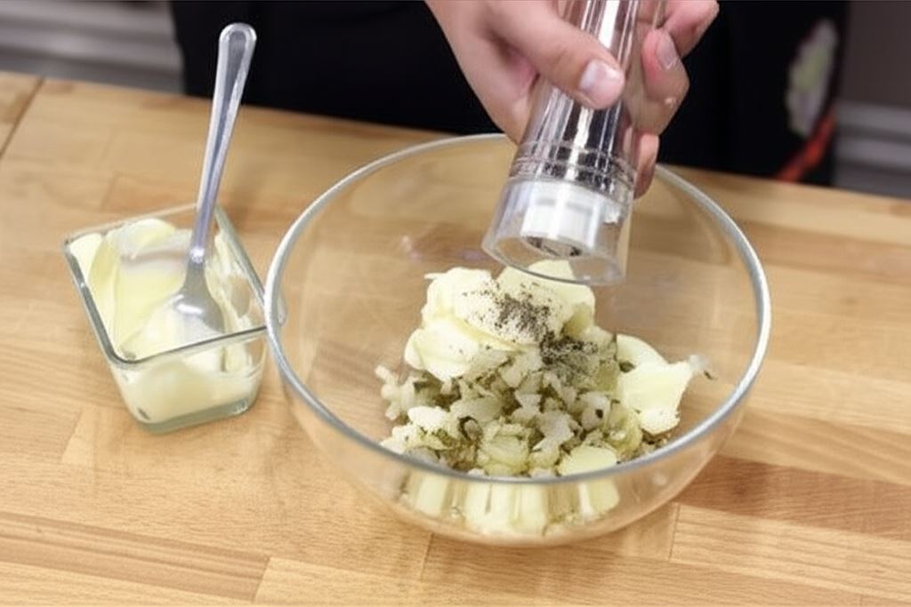 Ugotowane ziemniaki obierz i pokrój w kostkę o wymiarze ok. 1x1 cm. Ogórki posiekaj w drobną kostkę. W miseczce połącz ziemniaki z kremowym majonezem i zamieszaj. Dodaj pieprz i wymieszaj.
