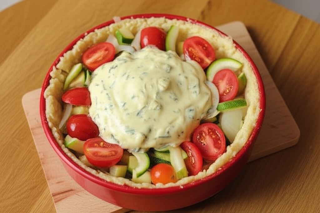 Odkryj niezwykłą wariację na temat klasycznego quiche, gdzie tradycyjne kruche ciasto zastąpiono aromatyczną bazą ryżową! Ta sycąca zapiekanka łączy w sobie delikatność ryżu, soczystość warzyw i kremową konsystencję jajecznego nadzienia, tworząc danie, które zachwyci każde podniebienie.