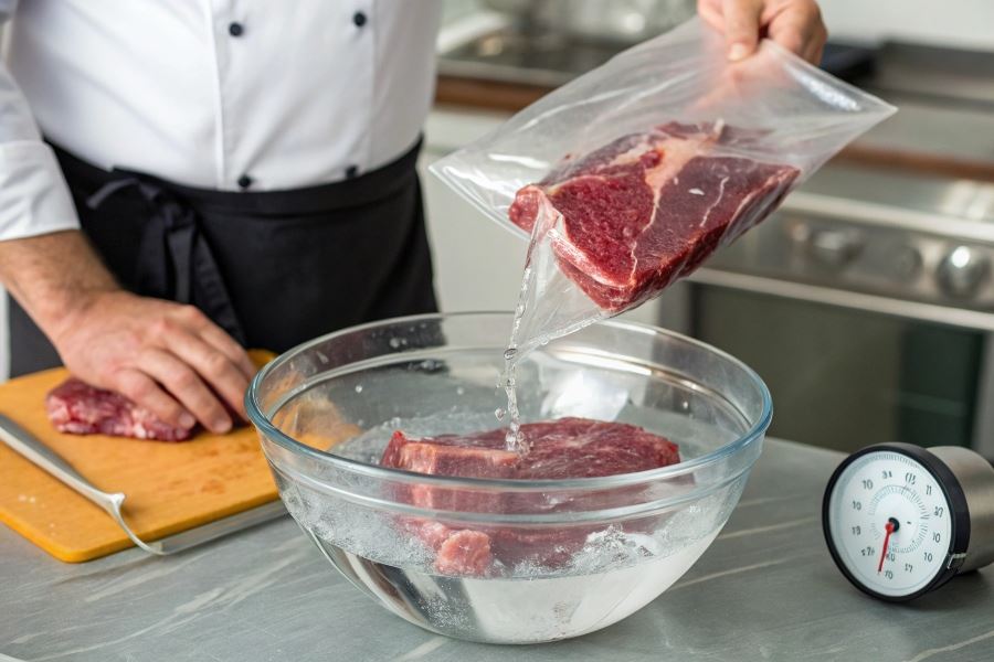 Rozmrażanie w zimnej wodzie to jedna z najszybszych i najbezpieczniejszych metod. Czas rozmrażania jest nawet 10 razy krótszy niż w lodówce, co czyni tę metodę idealną w sytuacjach, gdy potrzebujemy szybko przygotować mięso.