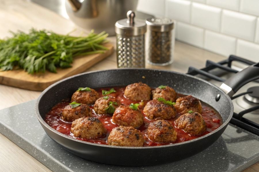 Pulpety z ketchupem na patelni to nie tylko oszczędność czasu, ale również energii – przygotowanie całego dania na jednej patelni minimalizuje ilość naczyń do mycia po posiłku.