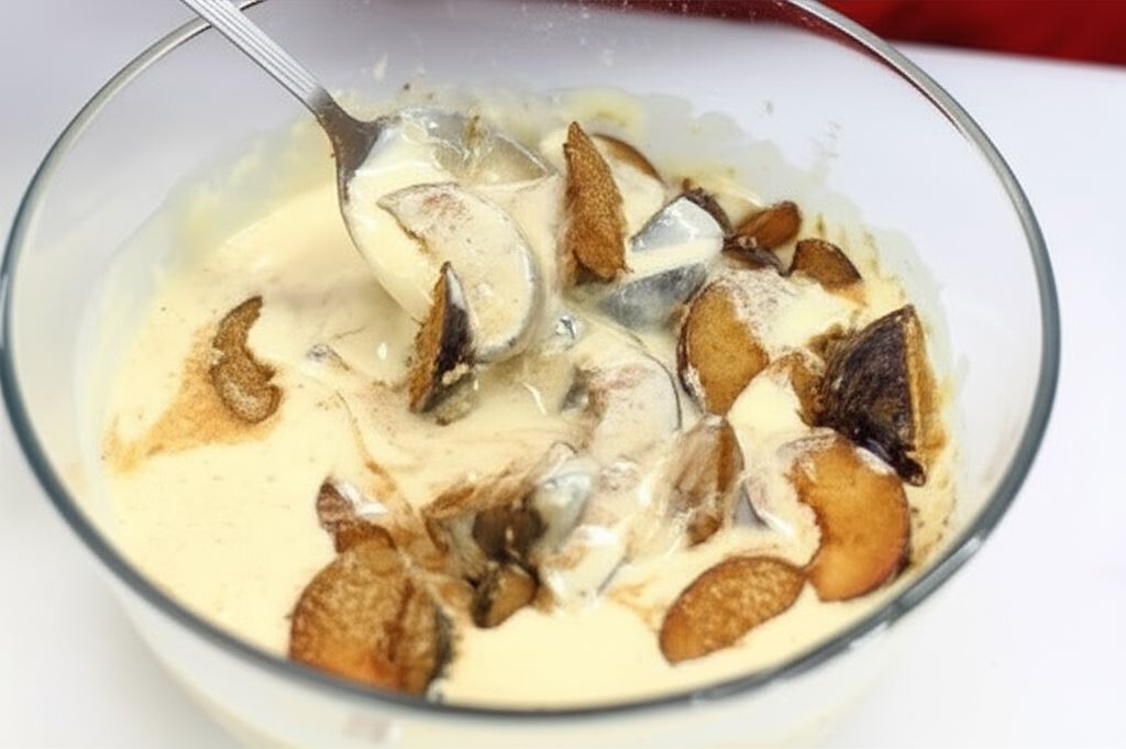 Wrzuć do ciasta delikatnie odcedzone śliwki i odstaw wszystko na parę minut.