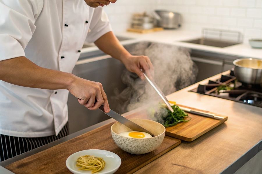 Onsen tamago to technika przygotowania jajek inspirowana japońskimi gorącymi źródłami (onsen). Charakteryzuje się wyjątkową teksturą – kremowym, niemal płynnym żółtkiem i delikatnie ściętym, jedwabistym białkiem. Sekret tej metody tkwi w precyzyjnej kontroli temperatury, która powinna wynosić 63-65°C przez około 45 minut.