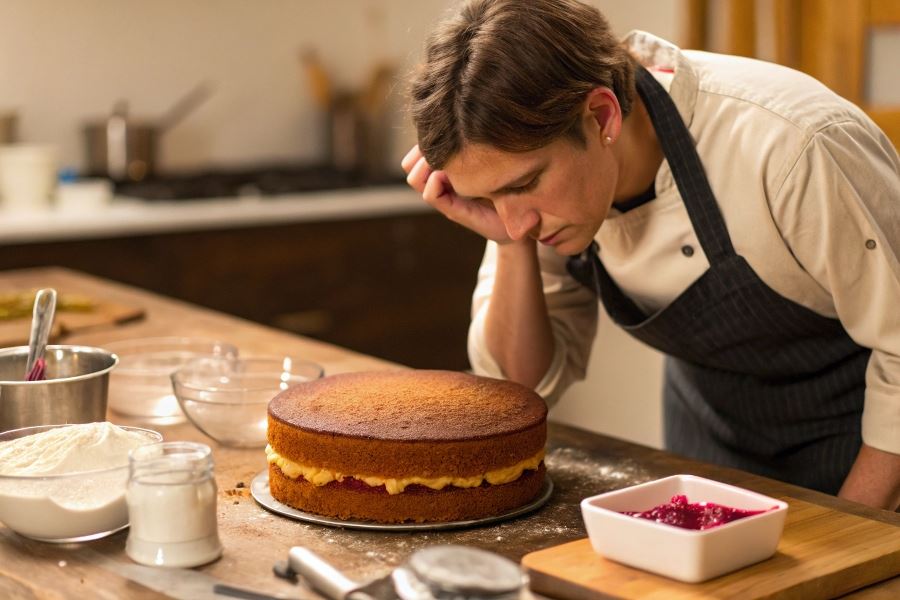 Alternatywnie, precyzyjne wykrojenie problematycznych fragmentów pozwala uratować większość wypieku. Zakalec najczęściej pojawia się w dolnej części ciasta, więc usunięcie tej warstwy może całkowicie rozwiązać problem. Pozostałą część można podać jako osobne porcje lub wykorzystać jako bazę do innych deserów.