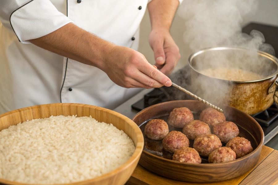Kluczowa wskazówka: Ryż do pulpetów powinien być nieco bardziej miękki niż al dente, ale nie rozgotowany. Po ugotowaniu należy go dokładnie odcedzić i pozostawić do ostygnięcia przez minimum 20 minut przed dodaniem do masy mięsnej.