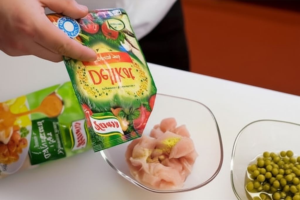 Kremowe risotto z kurczakiem i warzywami to prawdziwa uczta dla podniebienia! Delikatne mięso, doprawione Przyprawą Uniwersalną Delikat Knorr, nabiera głębokiego smaku, który harmonijnie łączy się z pozostałymi składnikami. Soczysta marchewka pokrojona w równą kostkę oraz słodki groszek z puszki dodają potrawce kolorów i wartości odżywczych. Całość połączona z ryżem i duszona w aromatycznym sosie pieczeniowym Knorr tworzy idealnie zbalansowane danie, które zachwyci każdego domownika.