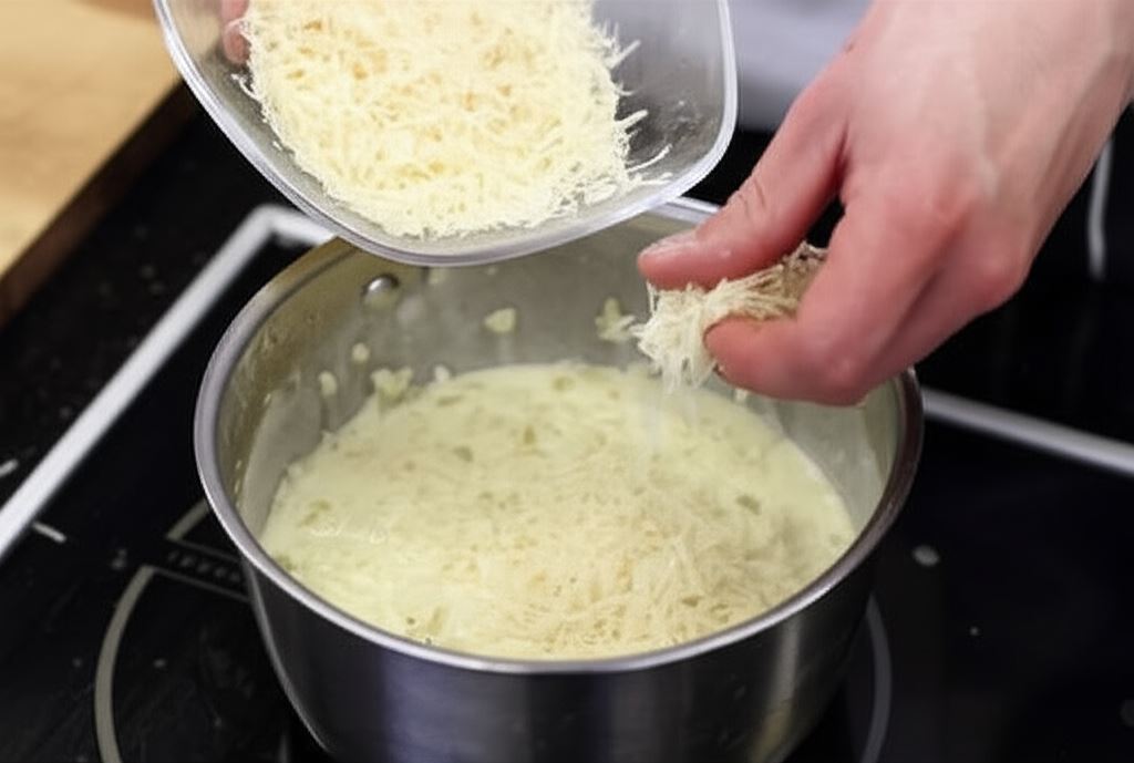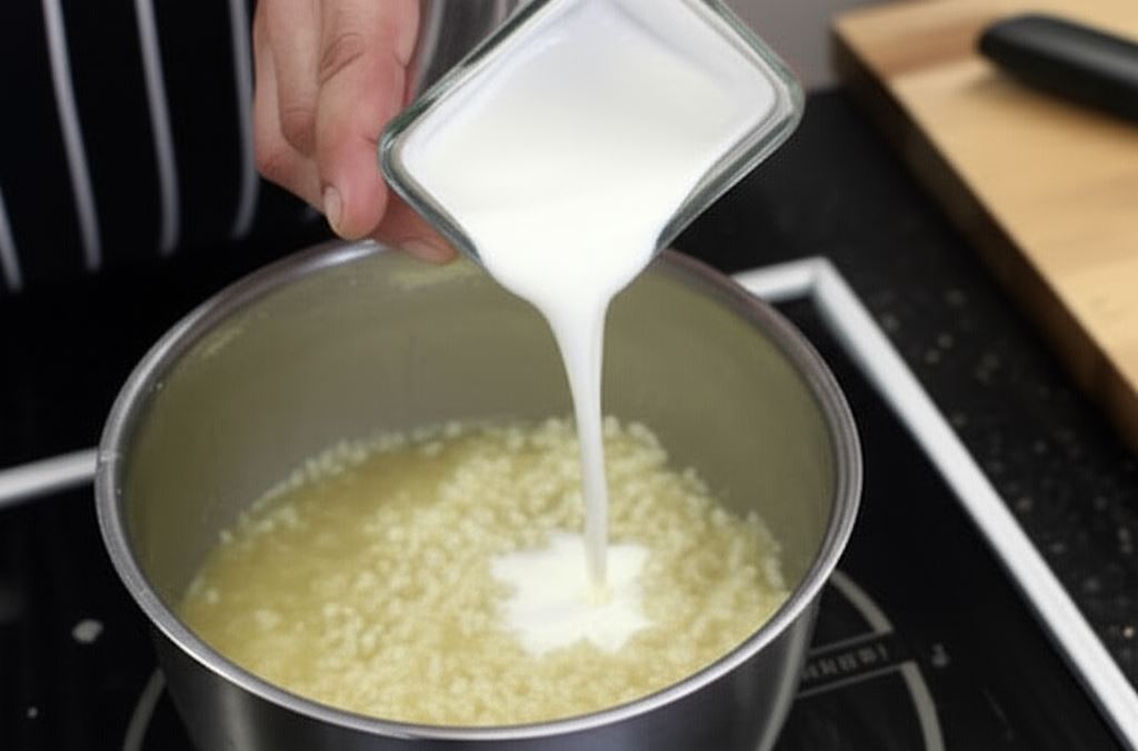 Kiedy ryż stanie się miękki, dodaj 100 ml śmietanki.