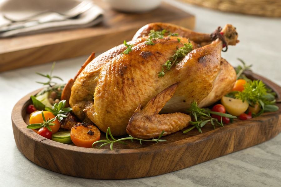 - Zmniejsz do 180°C i piecz przez kolejne 40-50 minut (w zależności od wagi ptaka)