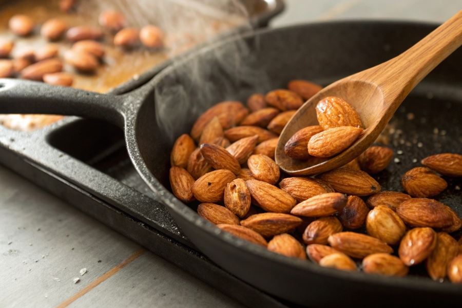 Prażenie z dodatkiem tłuszczu nadaje migdałom dodatkowy smak: