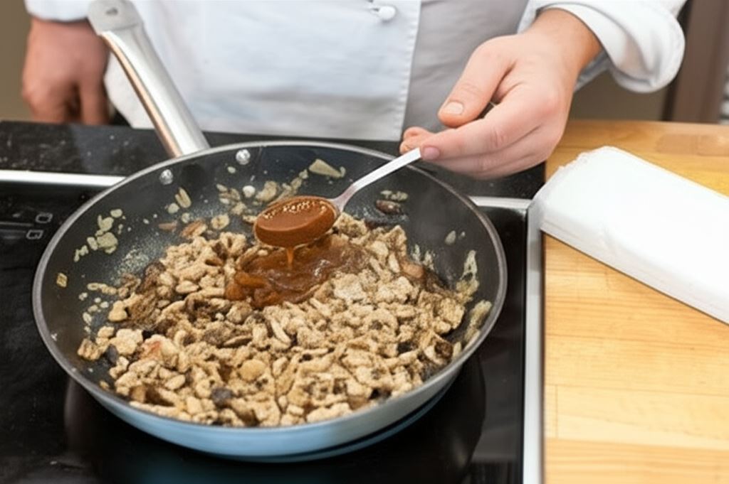 Na patelnię dodaj mięso, posiekaną natkę pietruszki oraz Bulionetkę wołową Knorr i całość przesmaż.