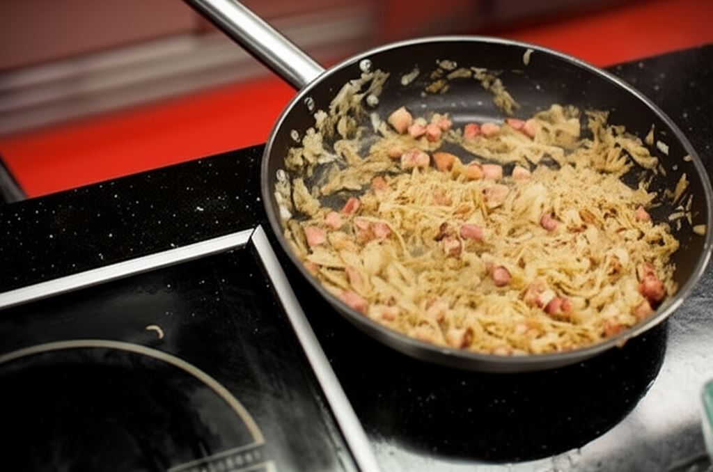 Odkryj niezwykłe połączenie smaków w tej wyjątkowej roladzie z szynki! Kruche mięso otula aromatyczną kiszoną kapustę, tworząc danie, które zachwyci nawet najbardziej wymagających smakoszy. Podsmażony boczek i cebula nadają kapuście głębi smaku, a dodatek kminku, miodu i majeranku wprowadza harmonijną równowagę między słodyczą a kwasowością.