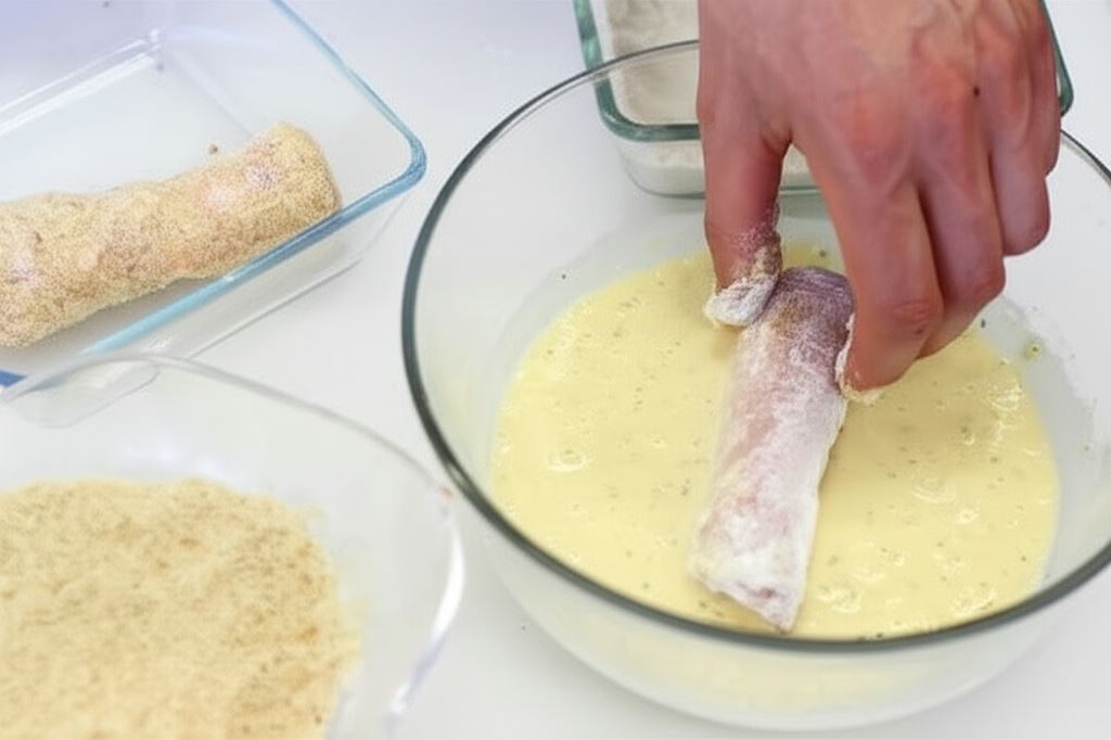 Roladki obtocz w mące, w jajku i śmietanie, a na koniec w bułce tartej.