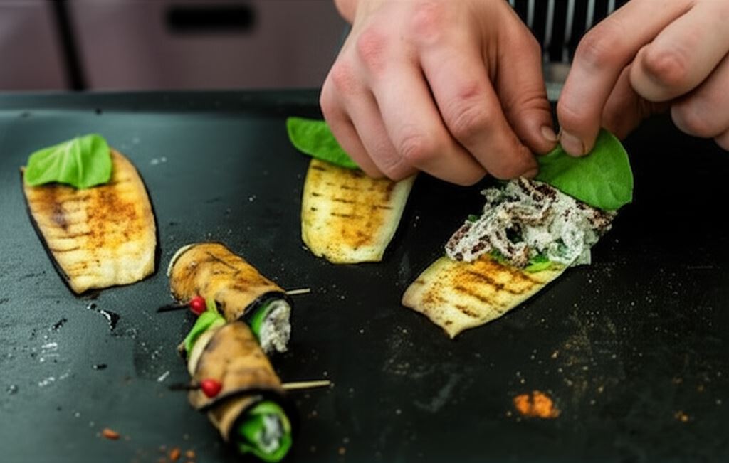 Roladki z bakłażana z pastą z pieczonego czosnku – kulinarna poezja na talerzu