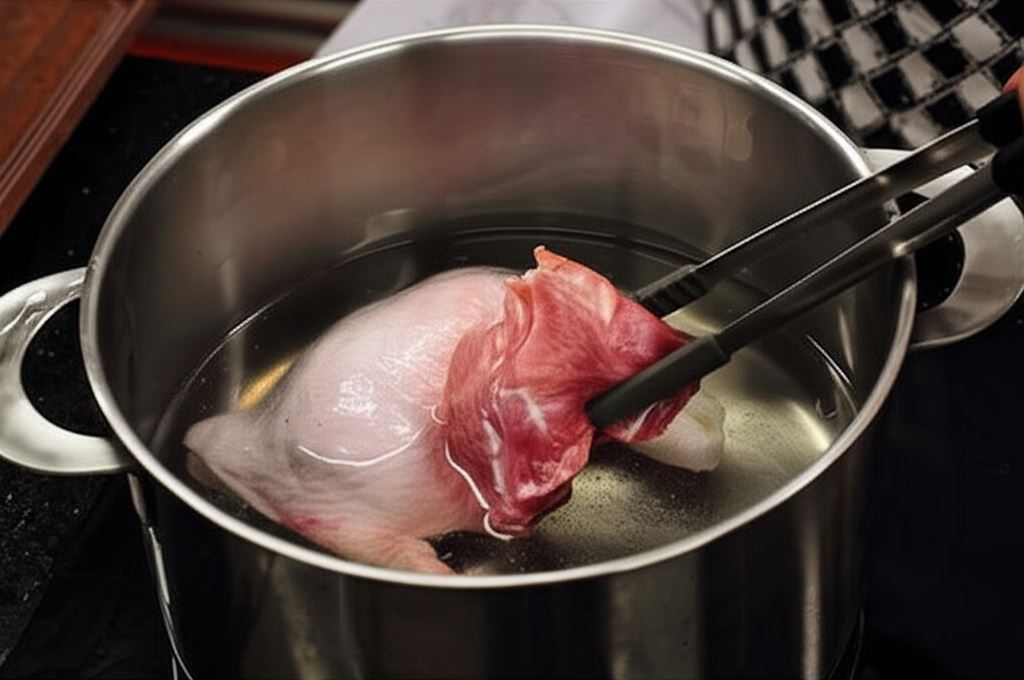 Opłucz i ugotuj mięso w osolonej wodzie.