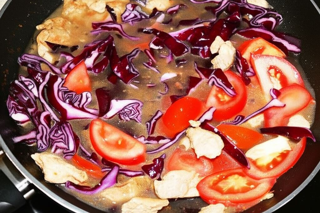 Gdy za oknem szaro i chłodno, nic tak nie rozgrzewa jak aromatyczna, sycąca zupa. Ta kompozycja łączy w sobie delikatność mięsa, wyrazistość czerwonej kapusty i pożywną kaszę gryczaną, tworząc idealny jesienny posiłek. Mięso pokrojone w paski, obsmażone i duszone z Bulionetką Knorr nabiera głębokiego smaku, a dodatek świeżych pomidorów wprowadza przyjemną kwasowość.