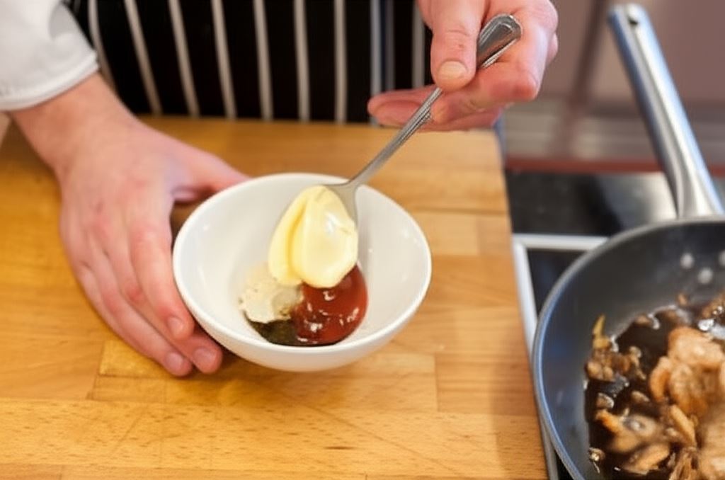 W międzyczasie przygotuj sos koktajlowy łącząc ketchup, majonez, sos worcester i chrzan.
