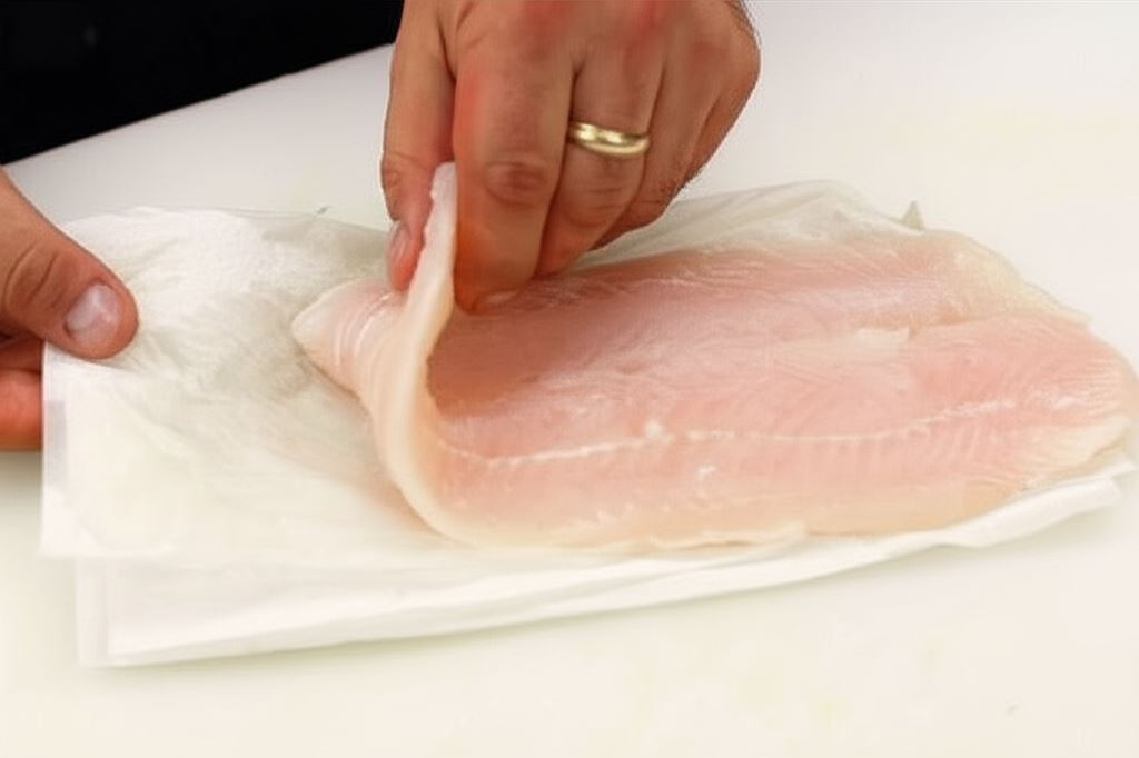 Rybę opłucz i wysusz. Wyciągnij ości i podziel na 4 filety.