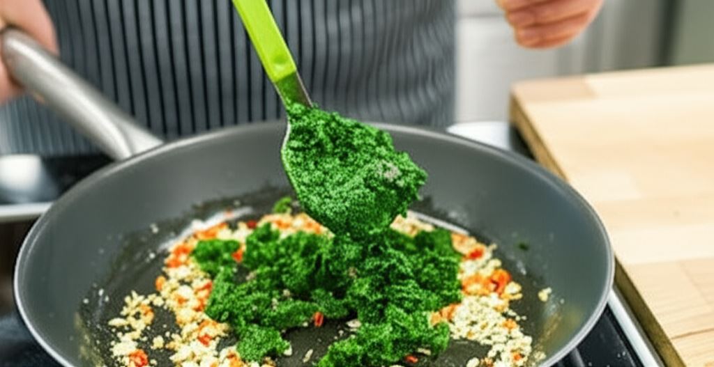 Całość smaż moment, dodaj pocięte suszone pomidory i przypraw kostką rosołową Knorr. Odłóż na moment na bok, by szpinak trochę ostygł. Po ostygnięciu dodaj serek ricotta i starannie wymieszaj.