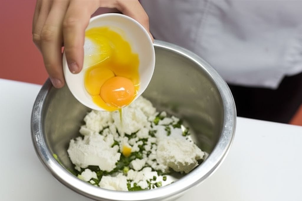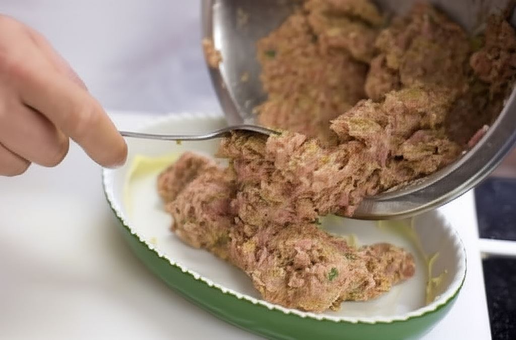 Wymieszaj go z mielonym mięsem, musztardą, białkami jaj i połową dymki. Wyrabiaj starannie dłońmi.