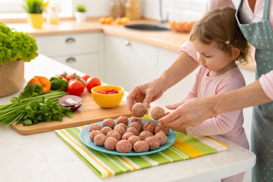 Konsystencja pulpetów dla roczniaka powinna być miękka i wilgotna, ale jednocześnie na tyle zwarta, by dziecko mogło je chwycić. Unikaj dodawania soli, ostrych przypraw i gotowych mieszanek przyprawowych, które mogą obciążać nerki dziecka.