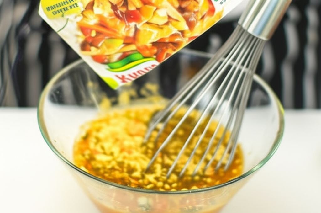 Fix połącz z wodą, sosem sojowym i przecierem pomidorowym, a następnie dodaj do warzyw.