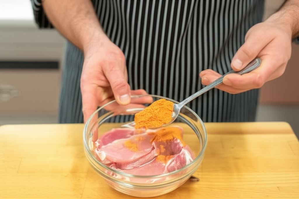 Schab potnij na kawałki o grubości dwóch centymetrów. W każdym kawałku wykonaj nacięcie nożem, tworząc kieszonkę w środkowej części mięsa. Mięso umieść w misce, dodaj 50 ml oleju, wsyp Przyprawę do schabu Knorr, która nada mięsu kruchość i odpowiedni aromat. Całość dokładnie wymieszaj, nakryj folią spożywczą i wstaw do lodówki na minimum 1 godzinę.