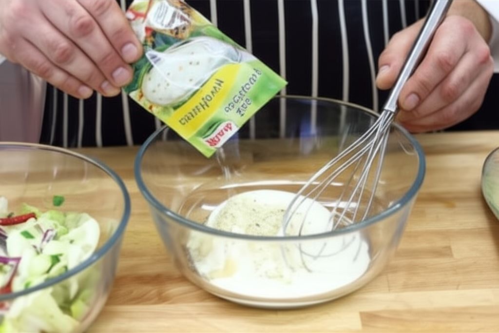 Wymieszaj sos sałatkowy Knorr z Majonezem Babuni Hellmann's oraz jogurtem.