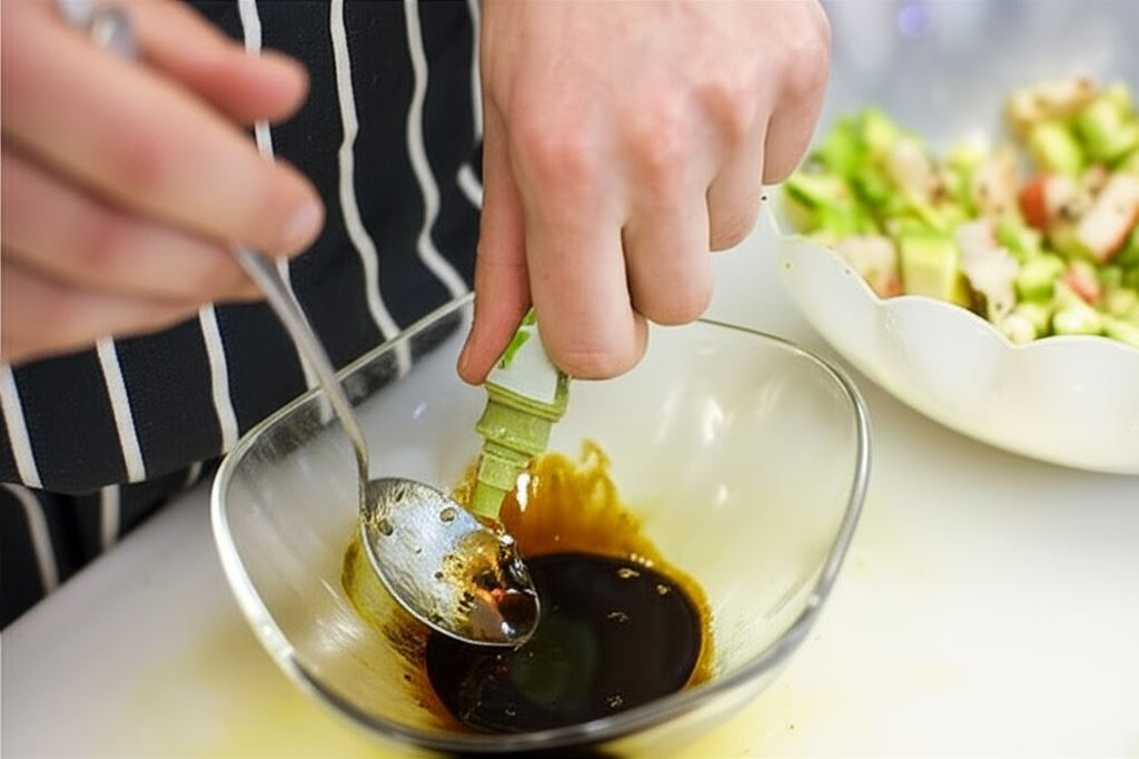 Sałatkę możesz podać z ryżem jaśminowym lub basmati w osobnej miseczce. Jako dekorację świetnie sprawdzą się świeże kiełki rzodkiewki lub innych warzyw. Dla bardziej wyrazistego smaku możesz dodać posiekaną kolendrę lub szczypiorek, a dla miłośników pikantnych doznań – zwiększyć ilość wasabi.