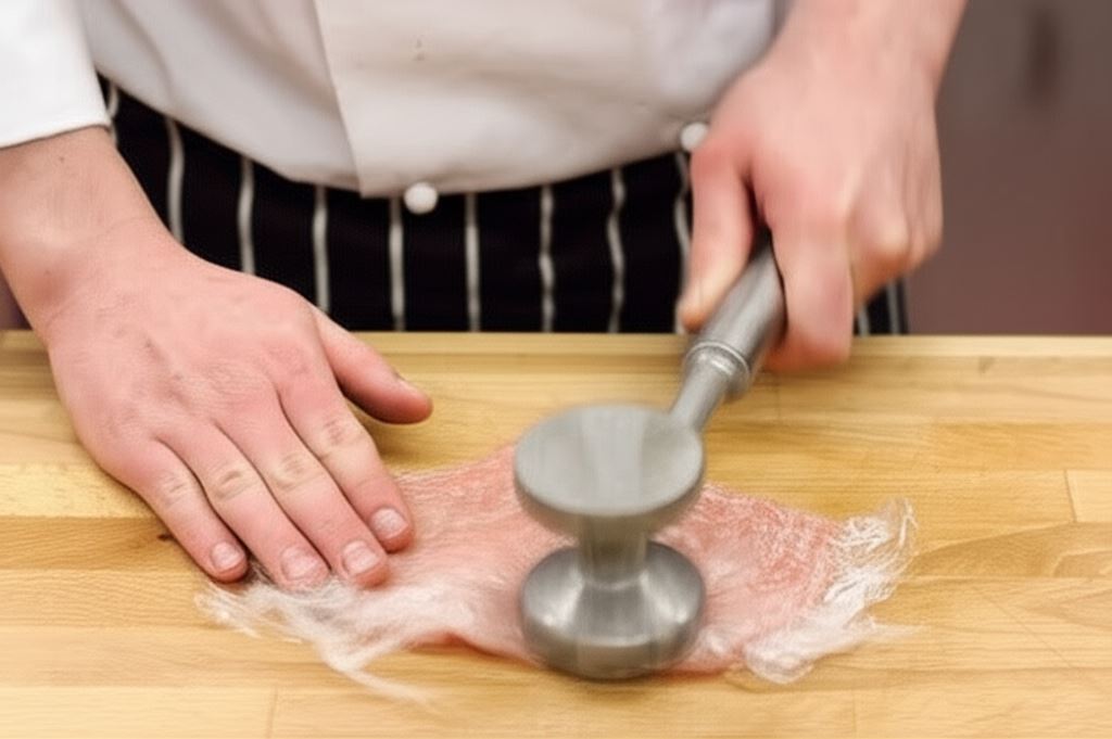 Mięso oczyść z błonek i delikatnie rozbij tłuczkiem, by miało grubość nie większą niż 2 cm.