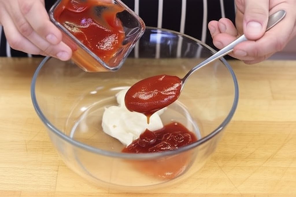 Połącz ketchup z majonezem oraz dwiema łyżkami wody.