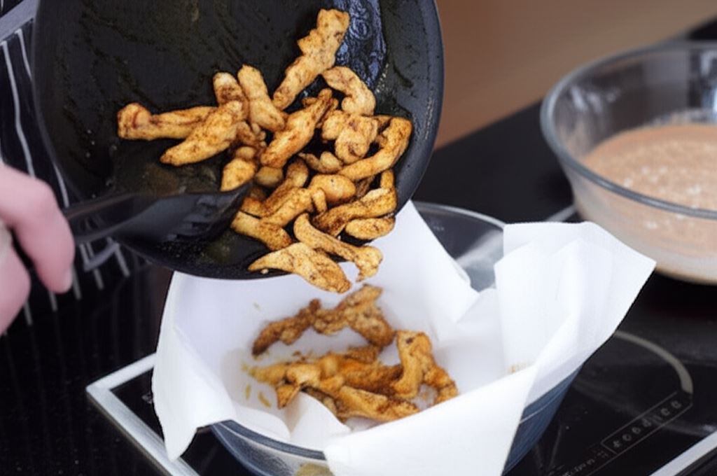 Przyrumień mięso do złotego koloru na niezbyt gorącym oleju. Odłóż na papierowy ręcznik, aby pozbyć się zbędnego tłuszczu i wystudź.