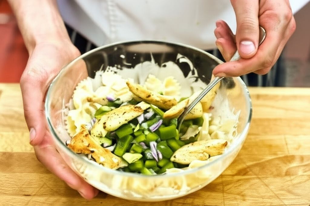 Przygotowanie tej smakowitej sałatki jest niezwykle proste! Wystarczy ugotować makaron, usmażyć przyprawione paski kurczaka, pokroić warzywa w kostkę i połączyć wszystko z aromatycznym dressingiem. Cały proces zajmuje zaledwie kilkanaście minut, a efekt zachwyca zarówno oczy, jak i podniebienie.