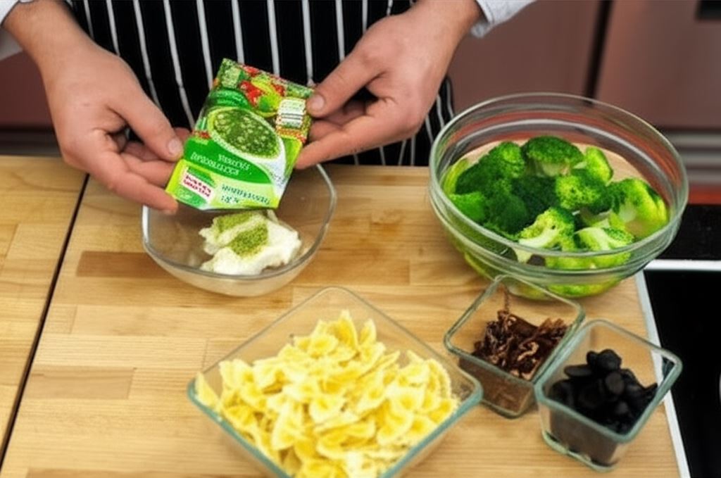 Delikatne różyczki brokułów w połączeniu z al dente ugotowanym makaronem tworzą harmonijną kompozycję, która zachwyci każdego miłośnika lekkich, ale sycących dań. Ta kolorowa sałatka to prawdziwa uczta dla oczu i podniebienia – soczysta zieleń brokułów kontrastuje z intensywną barwą suszonych pomidorów, a całość dopełniają aromatyczne czarne oliwki.
