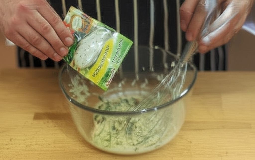 Zawartość paczki Knorr połącz z Majonezem Babuni Hellmann's, mlekiem, sokiem z cytryny oraz drobno posiekaną bazylią. Sos przypraw pieprzem.