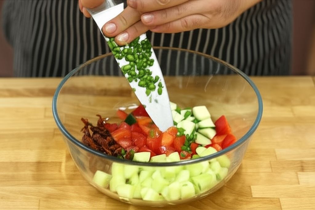 Połącz warzywa i obsyp je pokrojonym szczypiorkiem.
