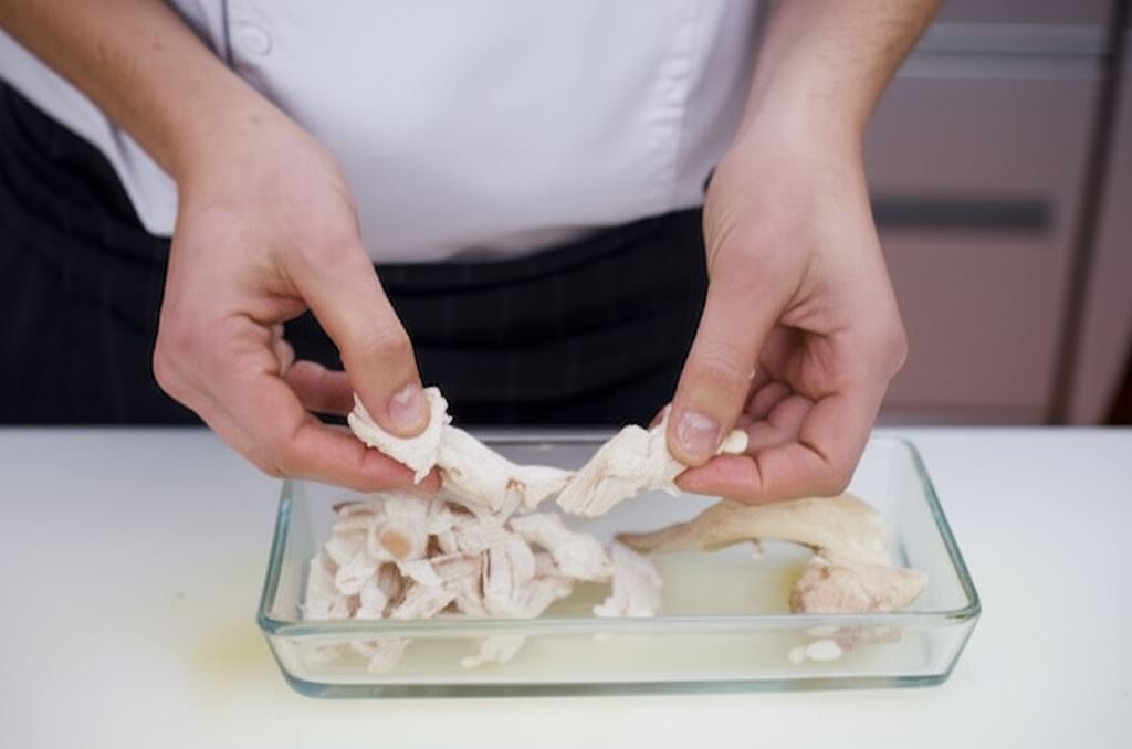 Mięso pozostałe po ugotowaniu rosołu rozdrobnij ręcznie.
