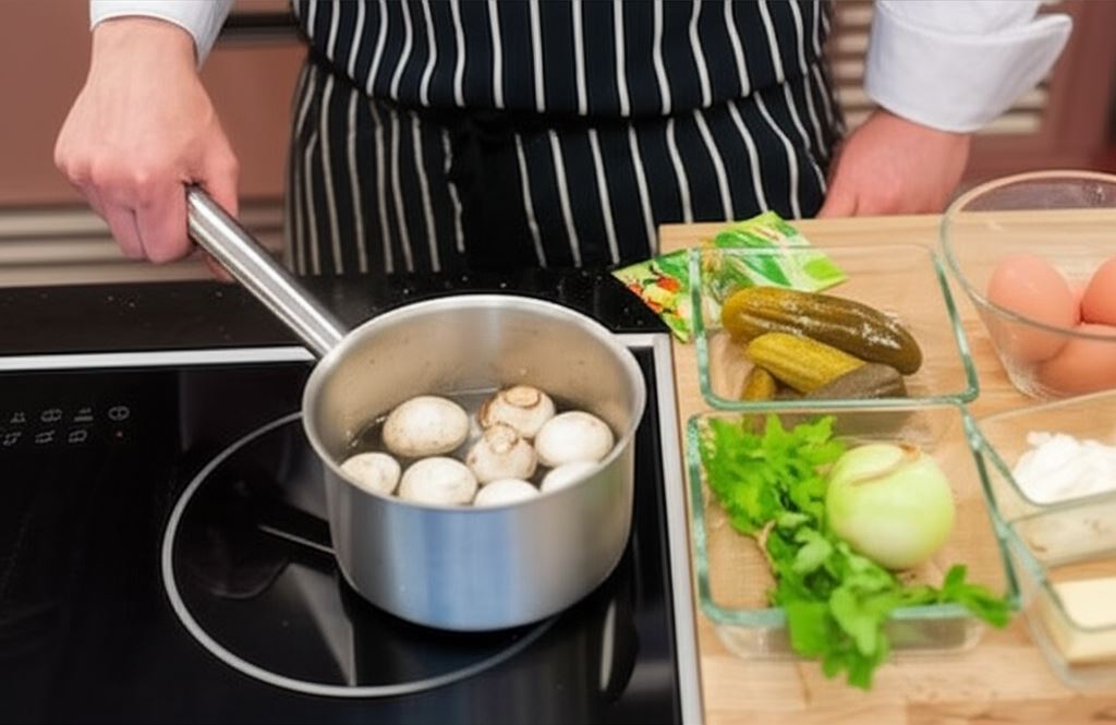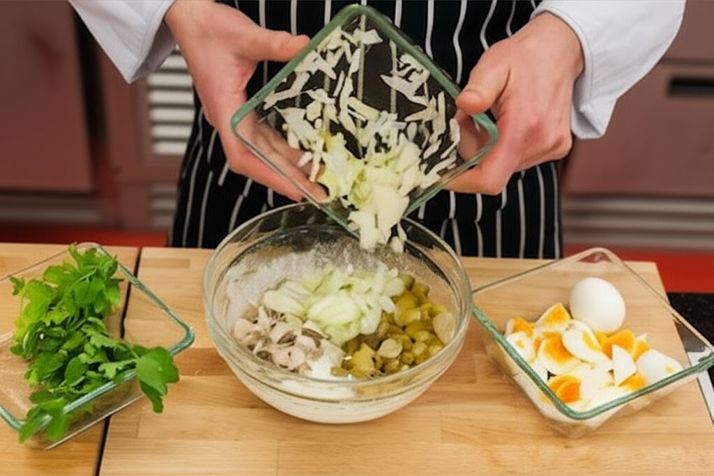Przygotowanie tej sałatki jest niezwykle proste! Wystarczy ugotować pieczarki, pokroić wszystkie składniki i połączyć je z kremowym sosem. Sekret udanej sałatki pieczarkowej tkwi w odpowiednim pokrojeniu składników – drobno posiekana cebula, pieczarki w cząstkach i ser w cienkie paski tworzą idealną kompozycję.