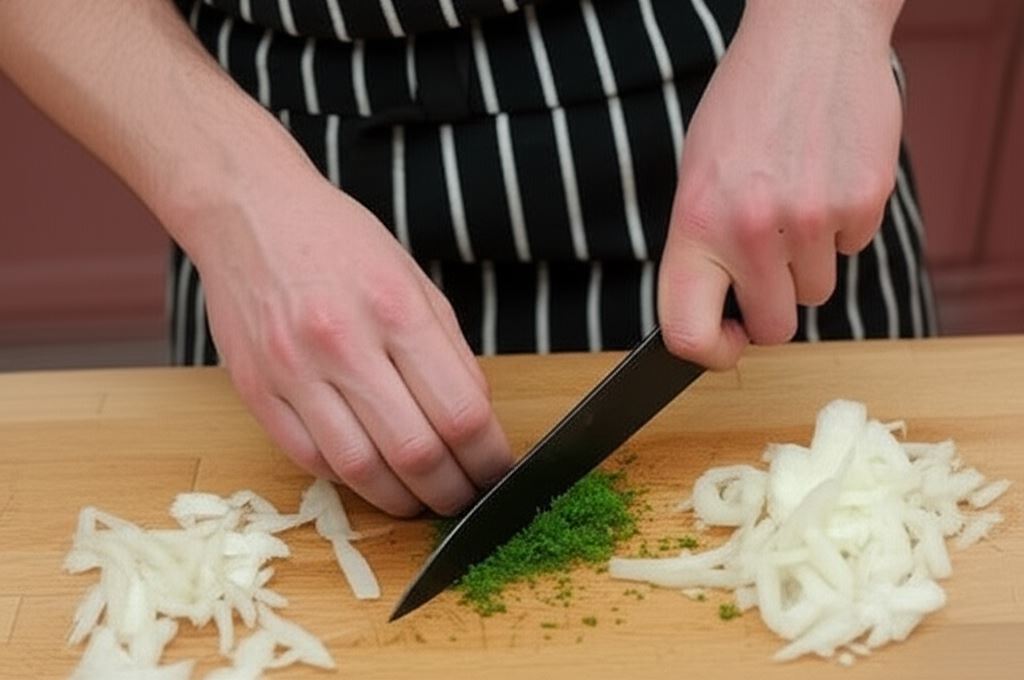 Cebulę drobniutko posiekaj, a koper pokrój.