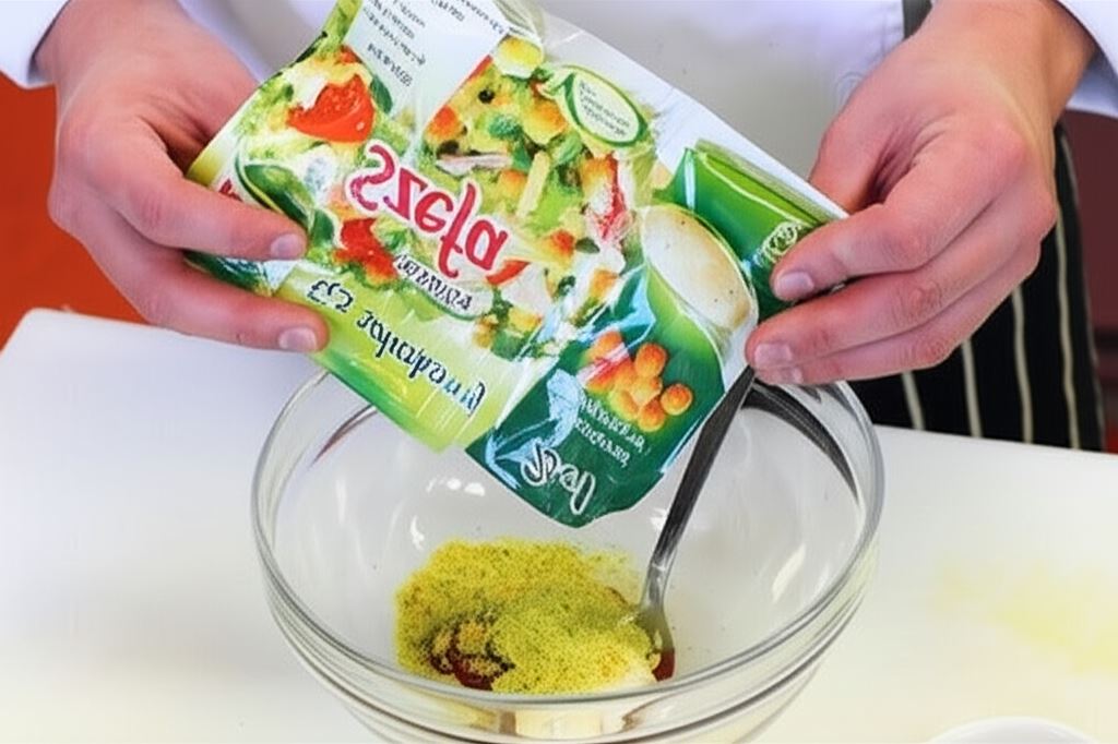 Sporządź sos sałatkowy. Połącz zawartość opakowania Knorr z majonezem i ketchupem. Wsyp pokruszony ser pleśniowy.