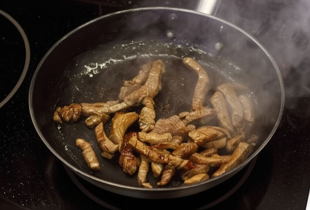 Wlej olej na patelnię. Boczek pokrój w paski, umieść go na patelni i dokładnie usmaż na skwarki. Potem przenieś na sałatę. Wołowinę potnij w paski i obsyp Przyprawą do mięs Knorr. Usmaż na tej samej patelni, na której smażył się boczek. Po usmażeniu również połóż ją na sałacie. Przed serwowaniem posyp sałatkę grzankami.