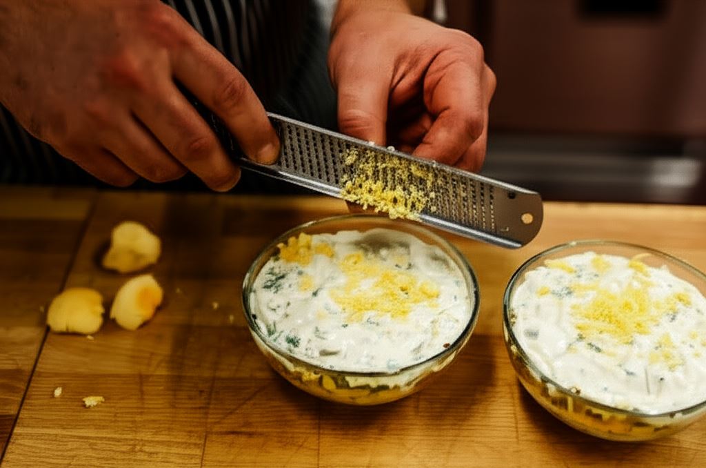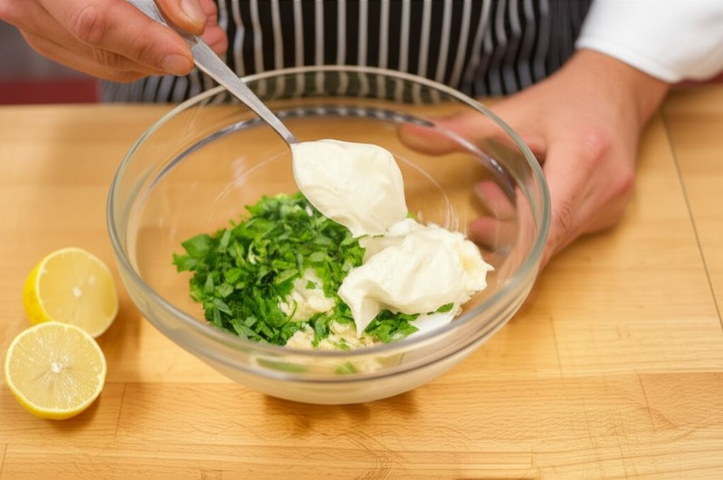 Wymieszaj majonez z musztardą chrzanową Knorr oraz jogurtem. Dorzuć natkę kolendry lub pietruszki i rozgnieciony na pastę ząbek czosnku. Sos przypraw do smaku sokiem wyciśniętym z jednej cytryny.