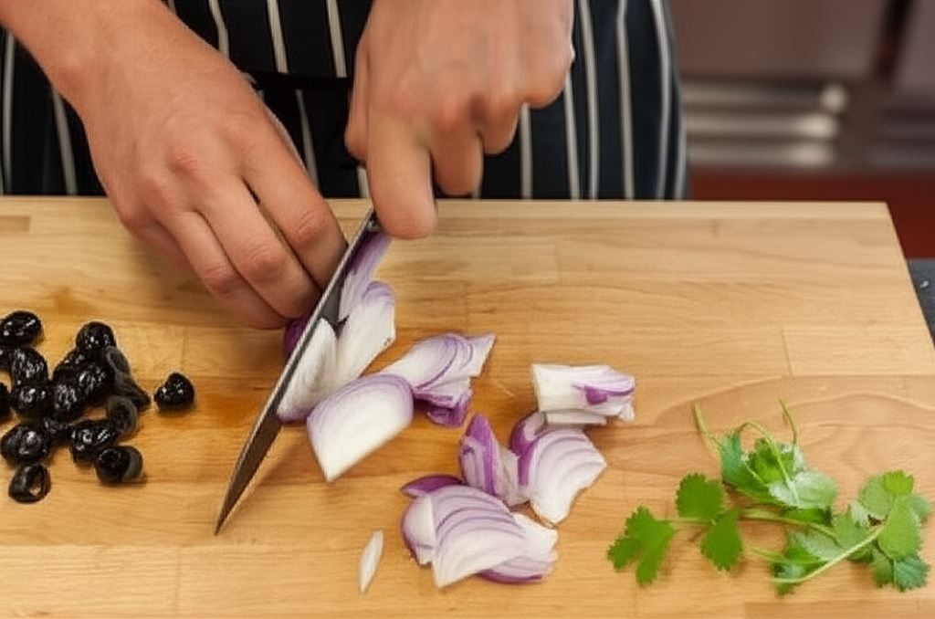 Oliwki przekrój na połówki, cebulę pokrój w półplasterki, a natkę posiekaj.