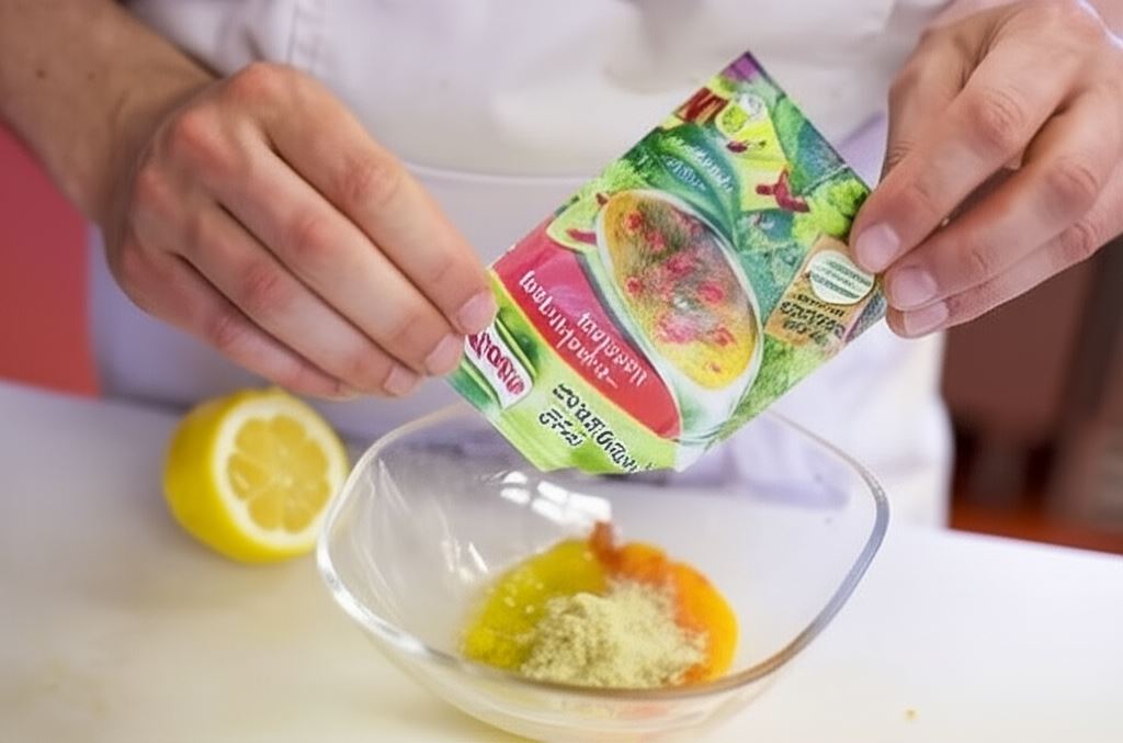 W międzyczasie nieugotowane żółtko razem z cukrem, papryką, musztardą i sosem sałatkowym Knorr wymieszaj z sokiem z cytryny i olejem.