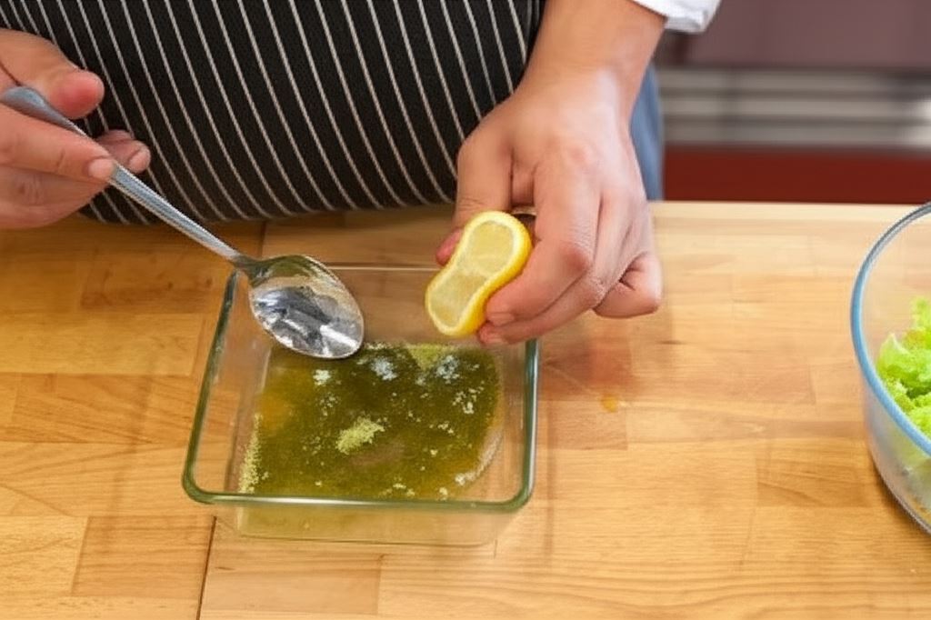 Sporządź pachnący, koperkowy sos z ziołami łącząc sos sałatkowy Knorr z oliwą, miodem oraz sokiem cytrynowym.