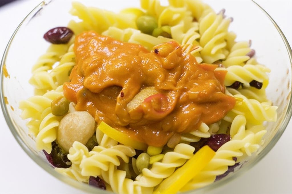 Sekret tej sałatki tkwi w idealnie wyważonym sosie. Zeszklona cebulka połączona z ketchupem, sosem sałatkowym Knorr i odrobiną pikantnego tabasco nadaje całości charakteru. Kremowy majonez łączy wszystkie składniki w harmonijną całość, a makaron ugotowany al dente stanowi doskonałą bazę dla pozostałych składników.