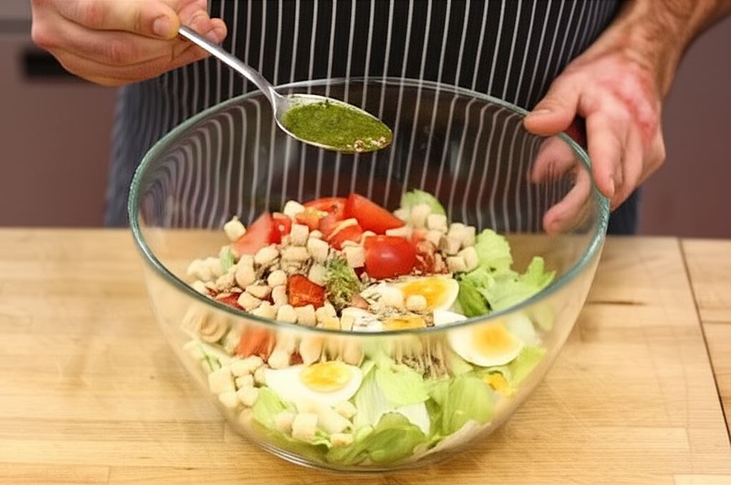 Delikatna sałata lodowa, chrupiące szparagi i sycące jajko na twardo tworzą harmonijną kompozycję w tej pysznej, wiosennej sałatce. Soczyste pomidory dodają świeżości, a prażone pestki słonecznika wprowadzają przyjemny, orzechowy akcent. Całość skropiona aromatycznym sosem włoskim z suszonymi pomidorami Knorr to prawdziwa uczta dla podniebienia!