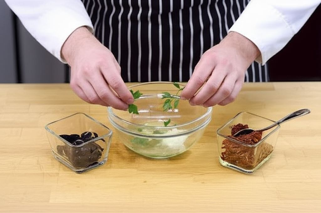 Sporządź aromatyczny, ziołowy sos łącząc zawartość opakowania Knorr z 3 łyżkami wody oraz oliwą, posiekaną cebulą i posiekaną natką pietruszki.