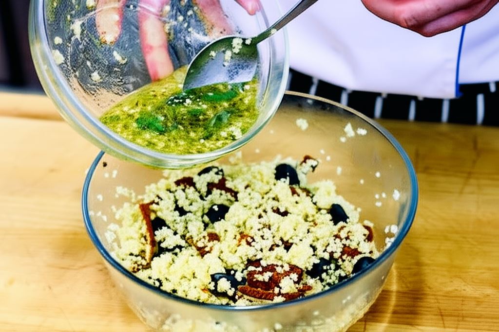 Jeśli używasz suszonych pomidorów w aromatycznej zalewie z żurawiną, skrop nią gotową sałatkę, aby wzbogacić smak. Możesz również dodać garść prażonych pestek dyni lub słonecznika dla przyjemnego chrupnięcia.