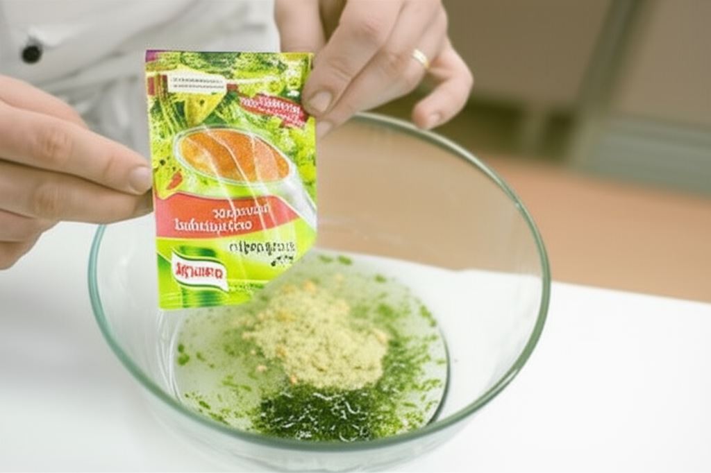 Sosy Knorr wymieszaj z oliwą i 6 łyżkami wody, dodaj drobno posiekaną kolendrę i połącz.