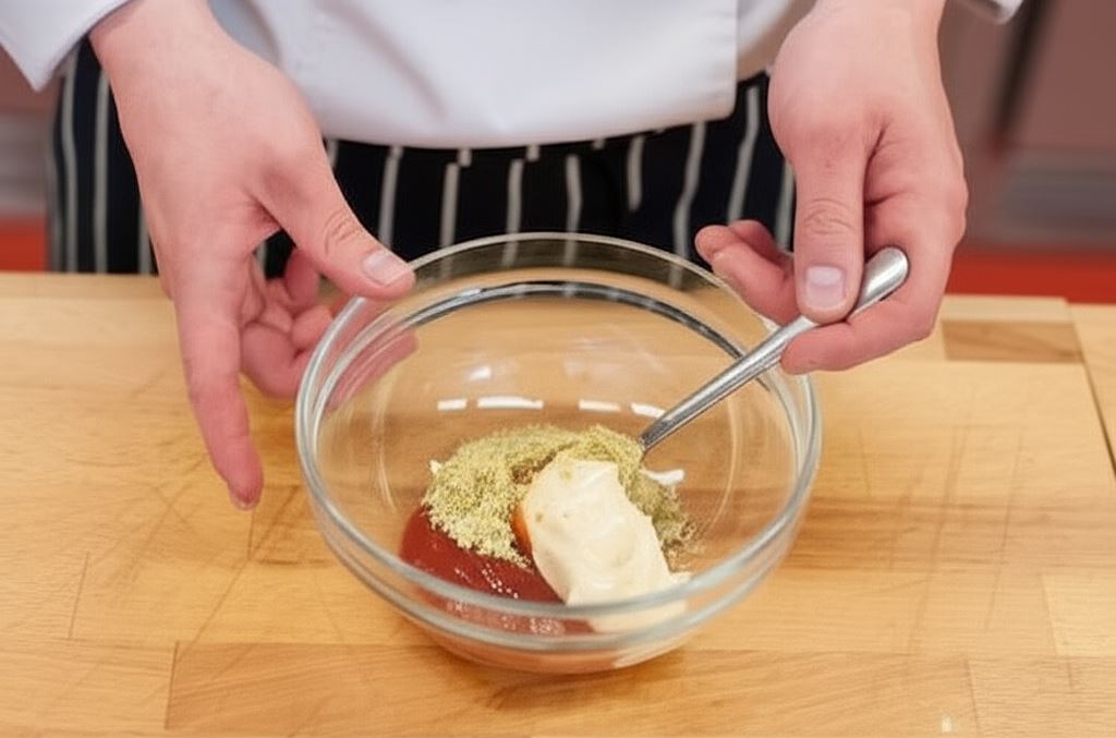 Połącz sos sałatkowy Knorr z Majonezem Babuni Hellmann's oraz Ketchupem Hellmann's Łagodnym.