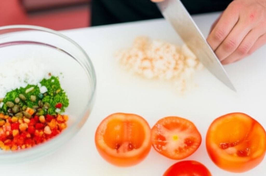 Soczyste pomidory wypełnione aromatycznym farszem z krewetek to propozycja, która zachwyci każdego miłośnika lekkich, letnich dań. Ta elegancka przekąska łączy w sobie słodycz pomidorów, delikatność ryżu i wyrazisty smak owoców morza w jednej, perfekcyjnie skomponowanej całości.
